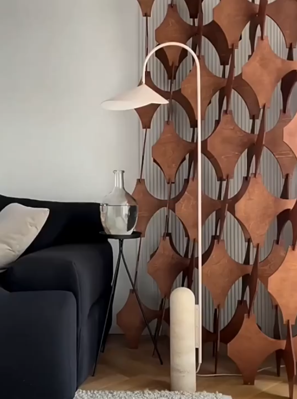 Arum Bedroom Marble Floor Lamp uses a combination of iron and marble. Iron is stable and solid, supporting the whole structure of the floor lamp for a long time; marble has natural textures, with delicate touch and high-end feeling. Meanwhile, the product offers two exclusive color options: Black White Root+Matte Black is simple and elegant, fitting modern or industrial style spaces; Cream White+Travertine is soft and fresh, suitable for Nordic or light luxury style spaces. No matter what decoration style it is, the floor lamp can fit naturally without extra matching details.