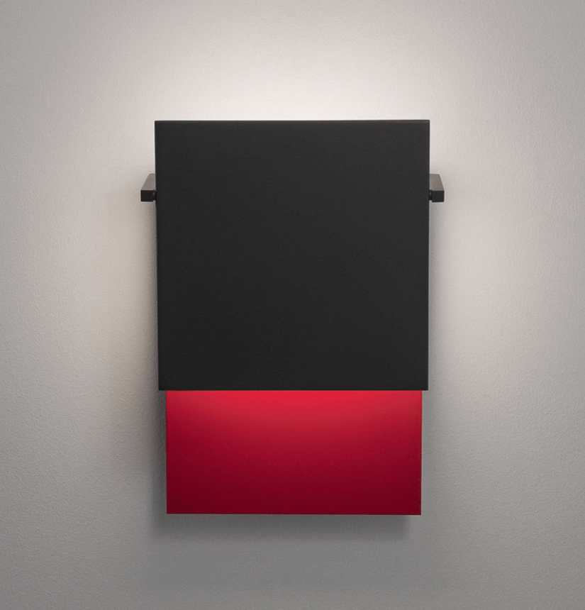 The light has a sturdy iron body with a matte black finish. Meanwhile, the red acrylic panel emits a warm and soft glow, creating a dramatic visual effect.