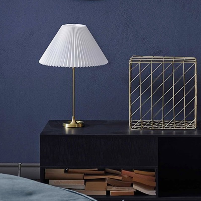 Le Klint 307 Masterpieces Table Lamp is a high-end dual-material table lamp, made of PE Shade+Copper, with Brass+White Shade color scheme. PE softens light without glare; Copper adds luxury feel, fitting restaurant table-side lighting, living room side table use, balancing practicality and style.