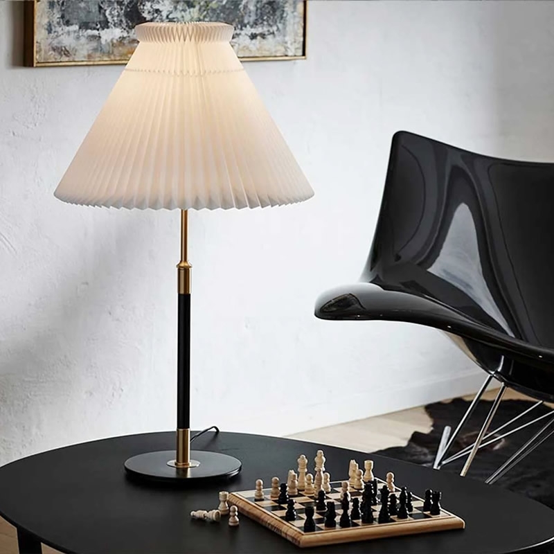 The Le Klint 352 Table Lamp embodies a blend of classic and modern design.  The high-quality PE shade ensures even and soft light diffusion. Meanwhile, the brass accents provide a touch of luxury. Additionally, the sturdy steel frame guarantees long-term stability. Importantly, this material combination ensures lasting performance.​