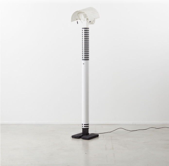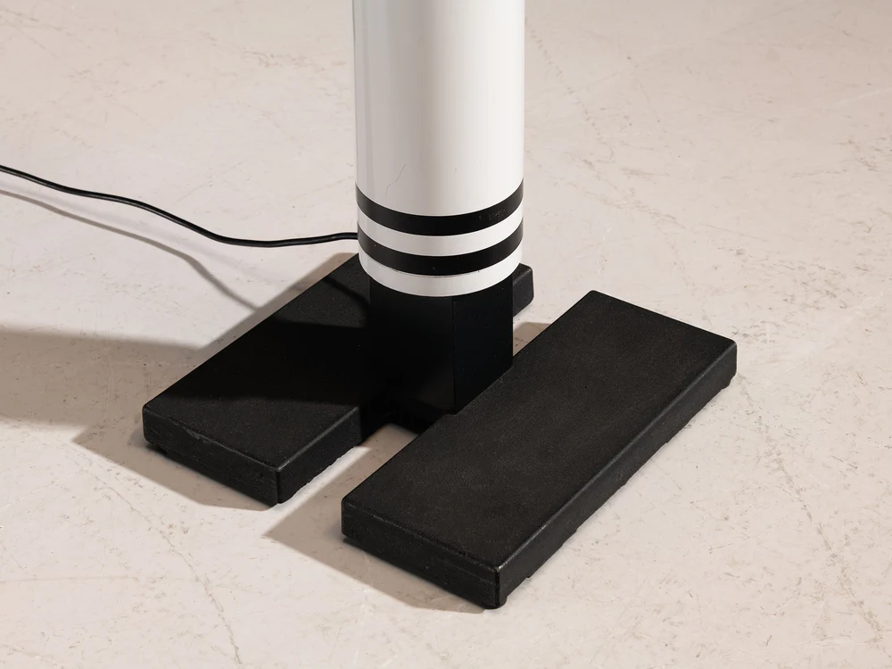 Mario Botta Shogun Floor Lamp Artemide is made of iron + aluminum. It has black + white color. It can be used in commercial places (restaurants, cafés, etc.) and home spaces (living rooms, bedrooms, etc.) with good sales.