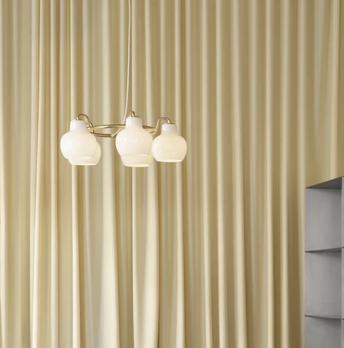 The strong iron frame has a chrome finish for rust resistance and durability. Its five milky glass shades provide even and soft lighting, reduce eye strain, and enhance ambient comfort.