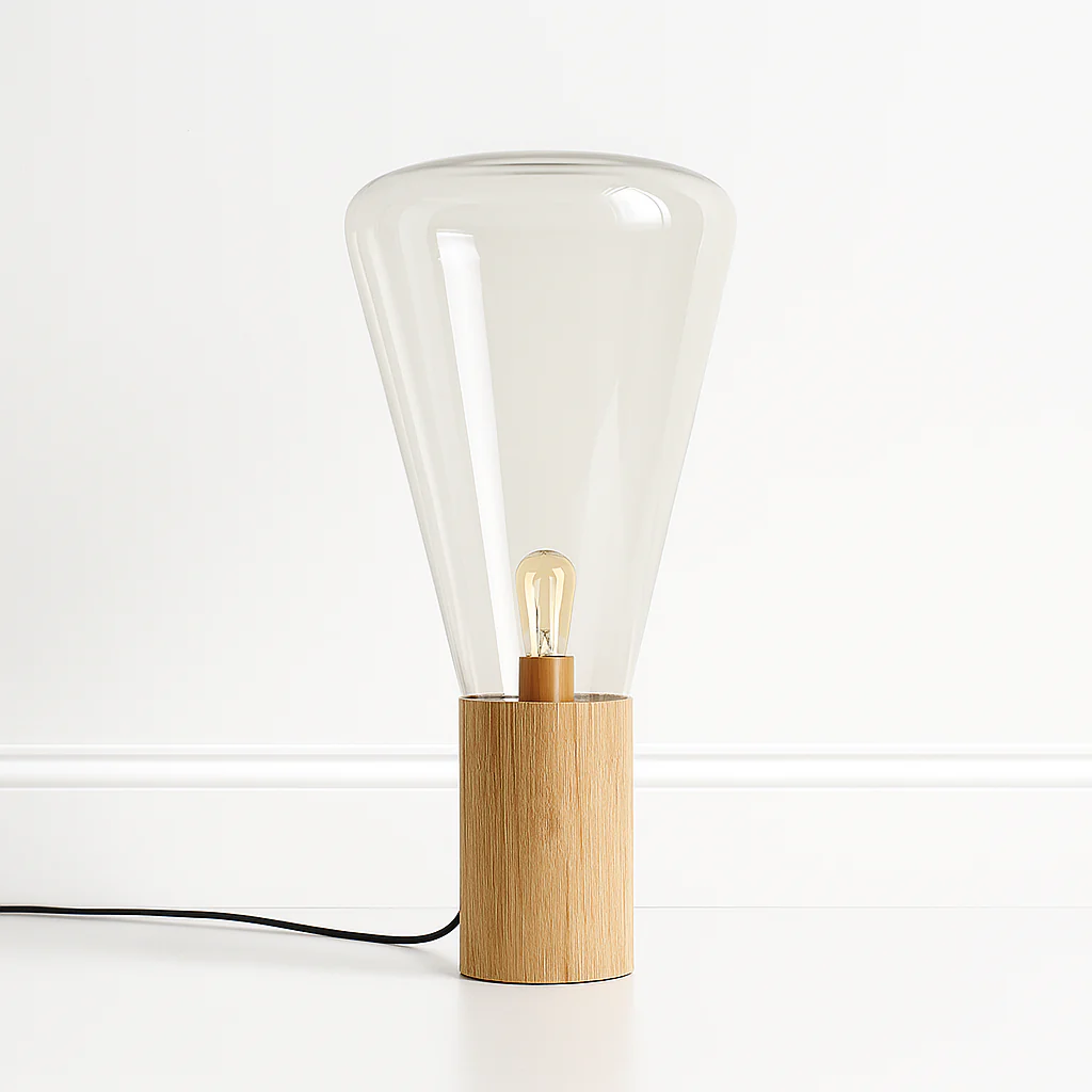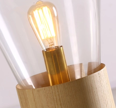 This lamp combines natural wood with high-quality glass. Additionally, the materials ensure durability and a modern look.