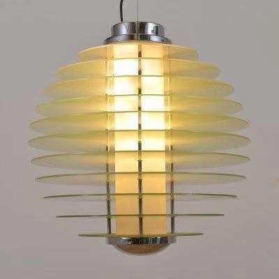 This Nordic-style creative atmosphere pendant lamp features a chrome finish with iron, aluminum, acrylic, and glass construction. Available in two sizes: D260H270MM or D260H285MM. Equipped with an 8W LED strip emitting a warm 3000K glow. Ideal for bedrooms, dining rooms, living rooms, and cafés. Suitable for both residential and commercial use, widely popular with high market demand.