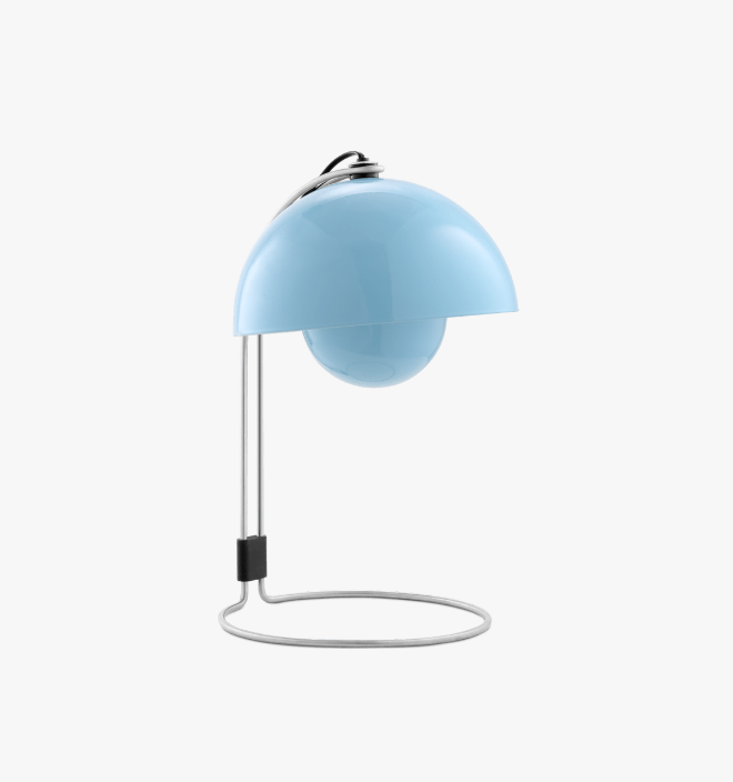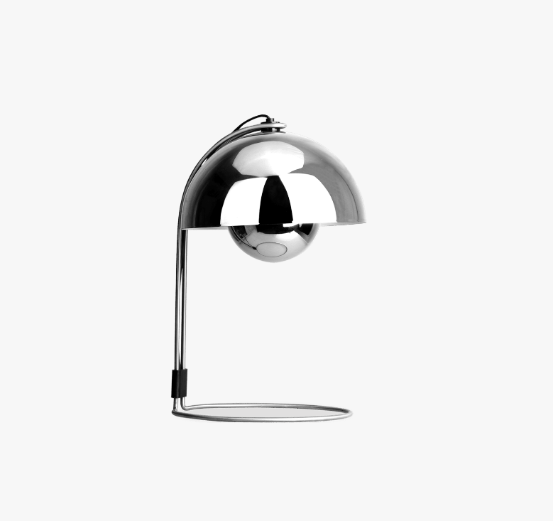 Panton Flower Pot Table Lamp VP4 features iron + aluminum for durability and refined texture. With 9 colors (Chrome, Rouge, Light Blue, etc.), it matches diverse decor styles, widely used in high-end restaurants, living rooms, hotels, clubs as a functional and decorative lighting choice.