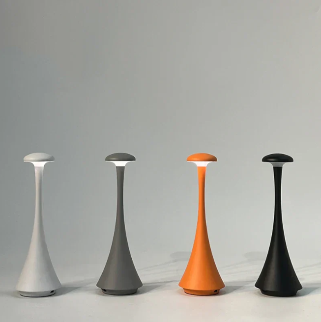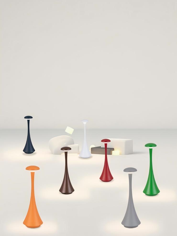 Rechargeable Wireless Touch Table Lamp Fair Lady: Made of aluminum and acrylic, 8 sand colors available. It’s wireless rechargeable with touch control, works for home & commercial use (fits restaurants/hotels/living rooms/bedrooms) and leads in sales.